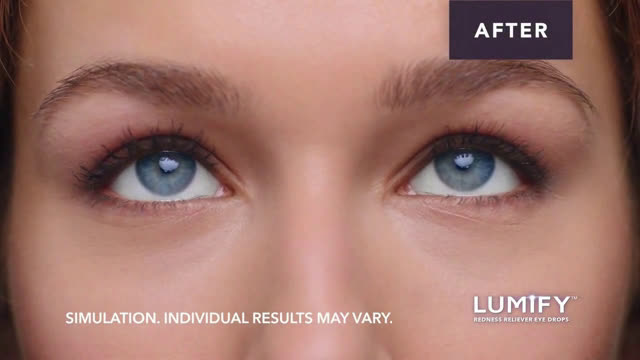LUMIFY Redness Reliever Eye Drops. Lumify Eye Drops TV Commercial Amazing Looking Eyes Lumify claims that its eye drops are a game-changer for people who want beautiful eyes. You wont believe your eyes after using LUMIFY the drop that dramatically reduces redness to help eyes.